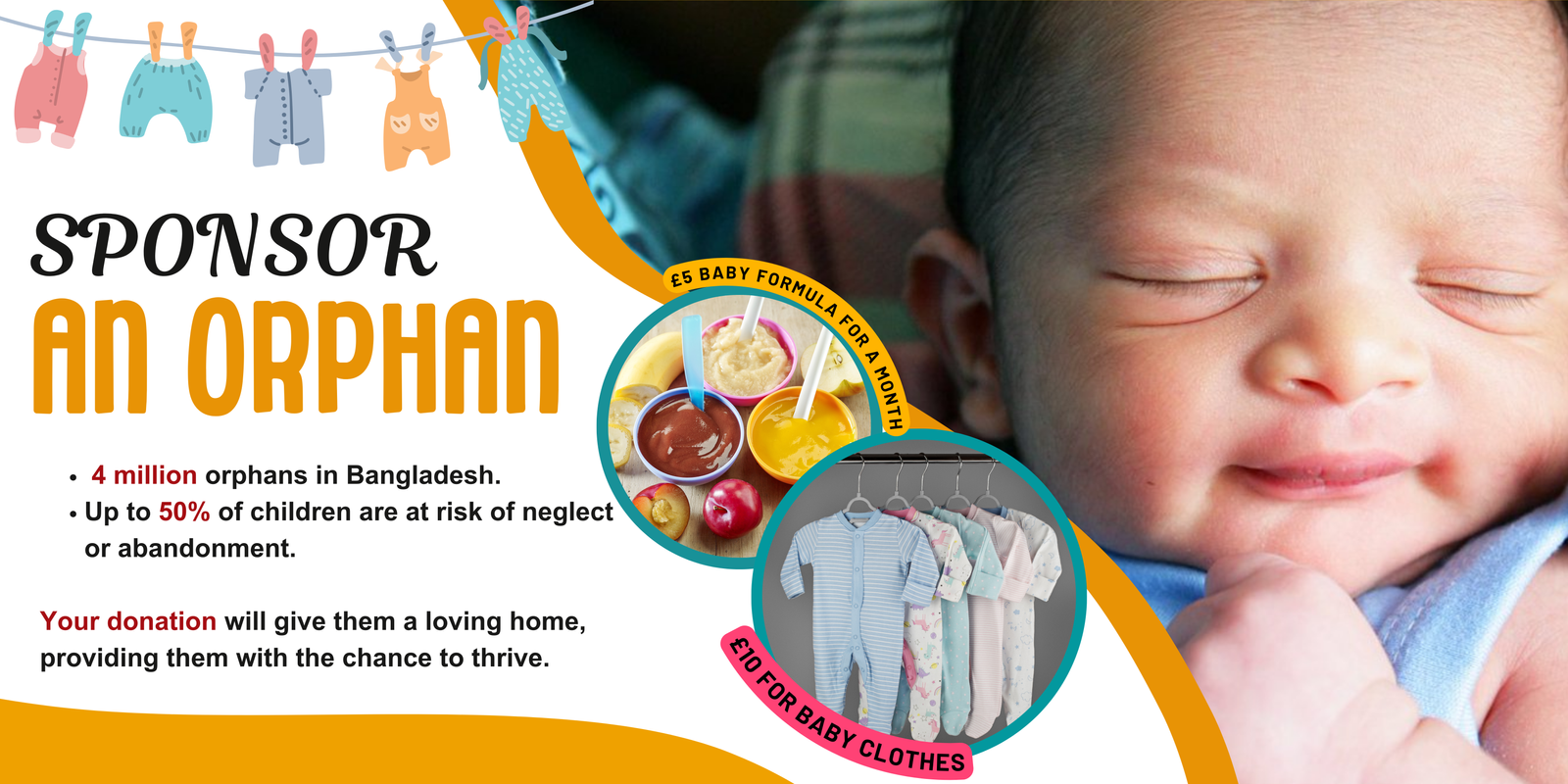 - Sponsor an Orphan: Your monthly donation will directly support a child, giving them food, shelter, education, and a loving family.